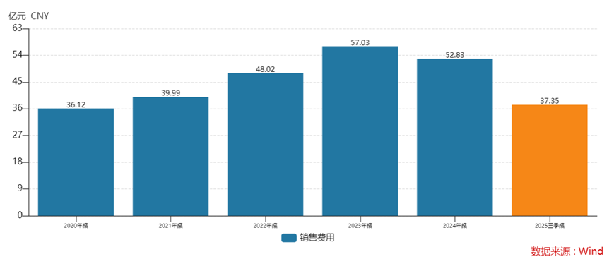 此外,迈瑞医疗长期存在的“重营销轻研发”问题也被人诟病。数据显示,2022年到2024年,迈瑞医疗销售费用分别为48.02亿元、57.03亿元、52.83亿元;到2025年三季度竟然又同比增长1.93%到37.35亿元,占营收的比重更是达到了14.5%。